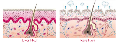 Falten und Fältchen: Eine dünne Epidermis, Schlechter zellulärer Zusammenhalt und transepidermaler Wasserverlust.
